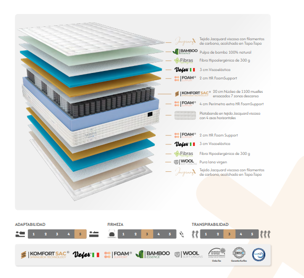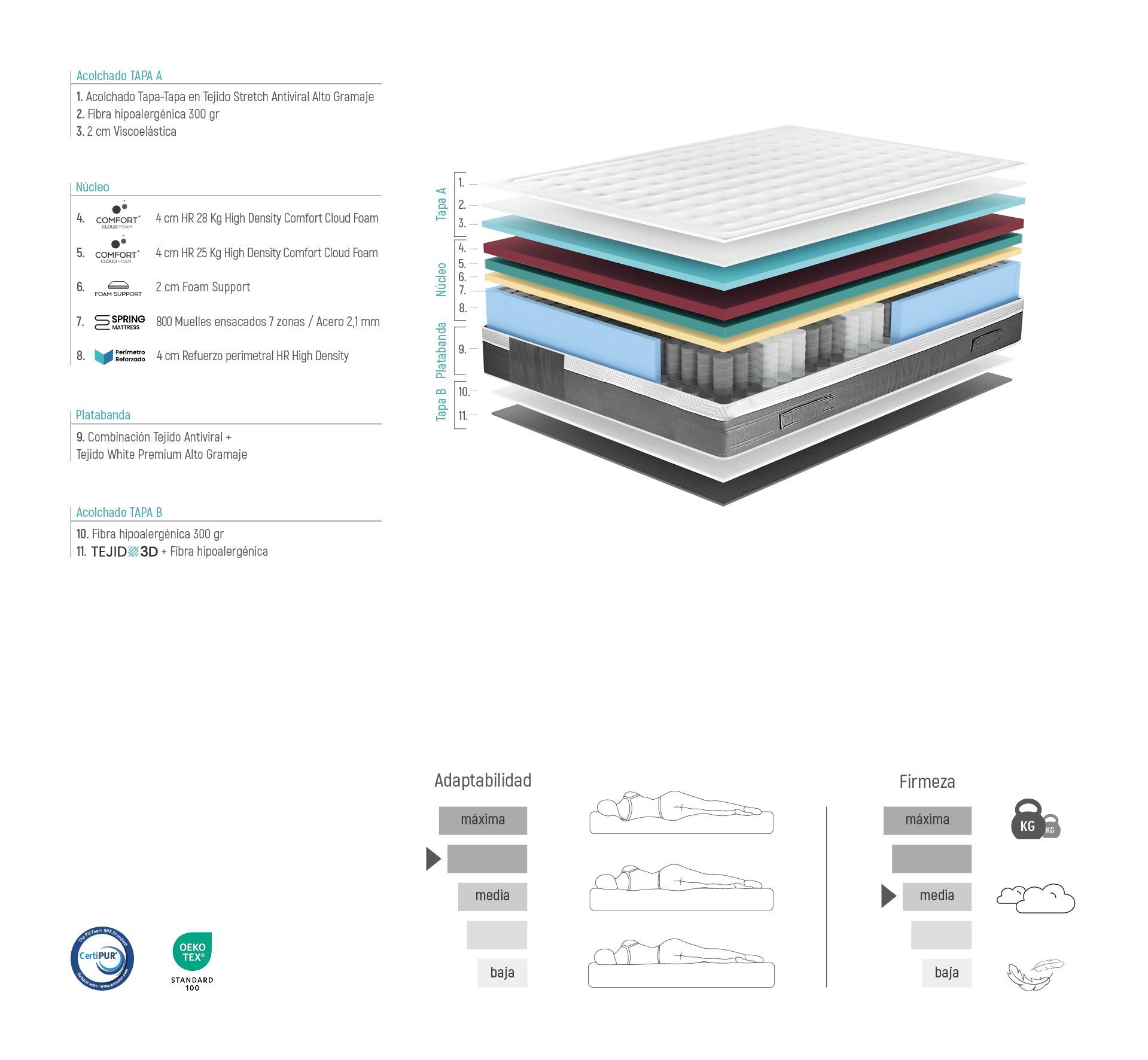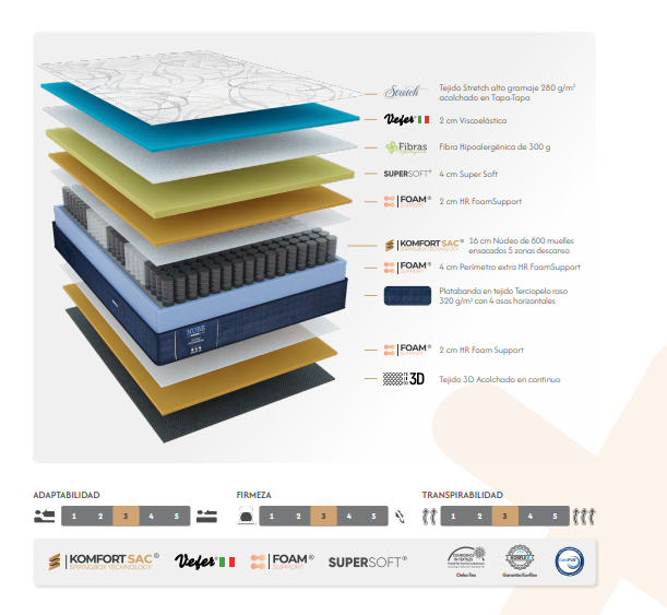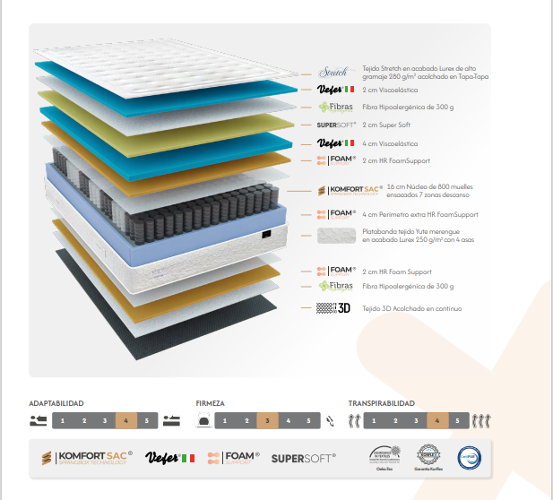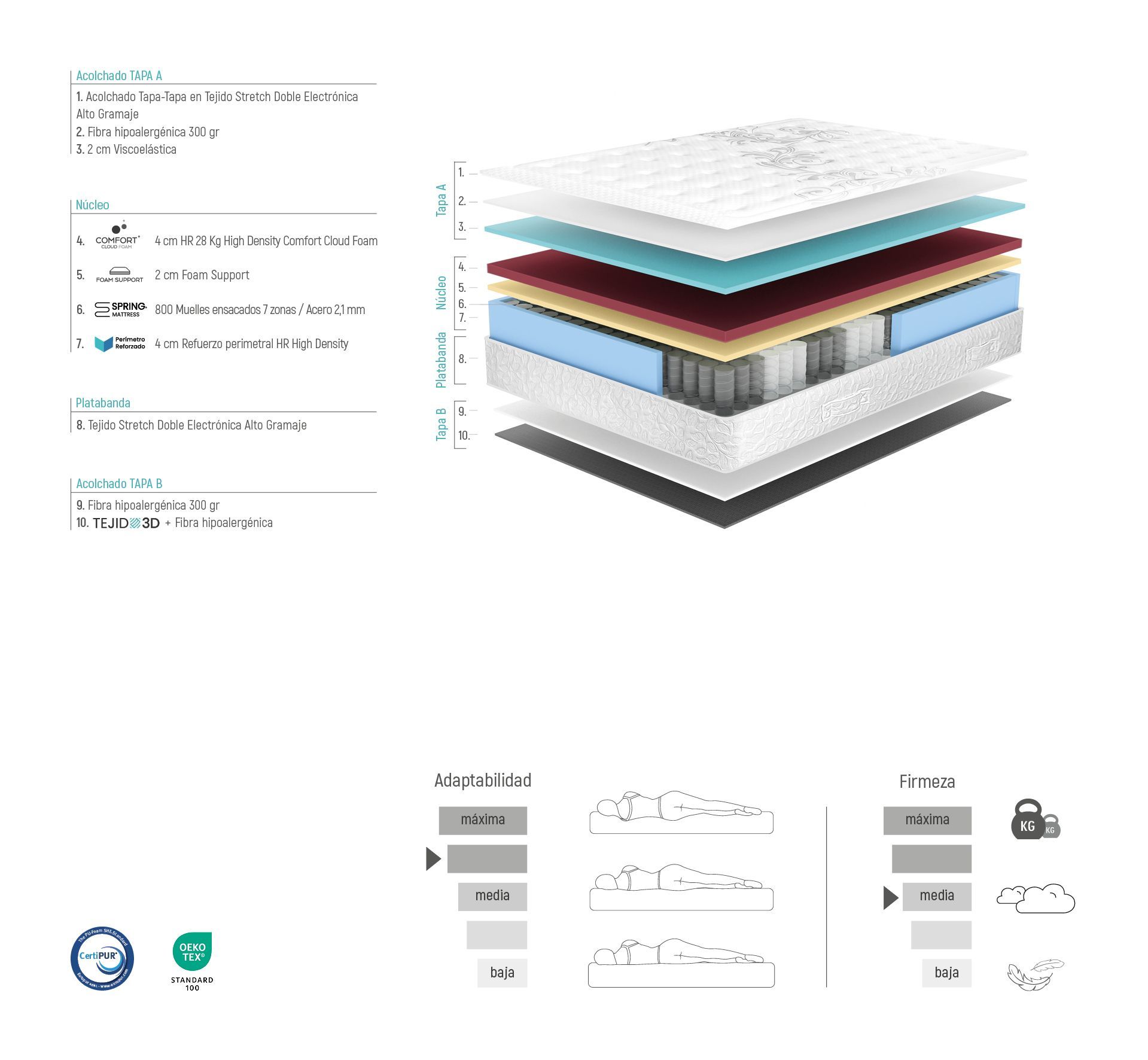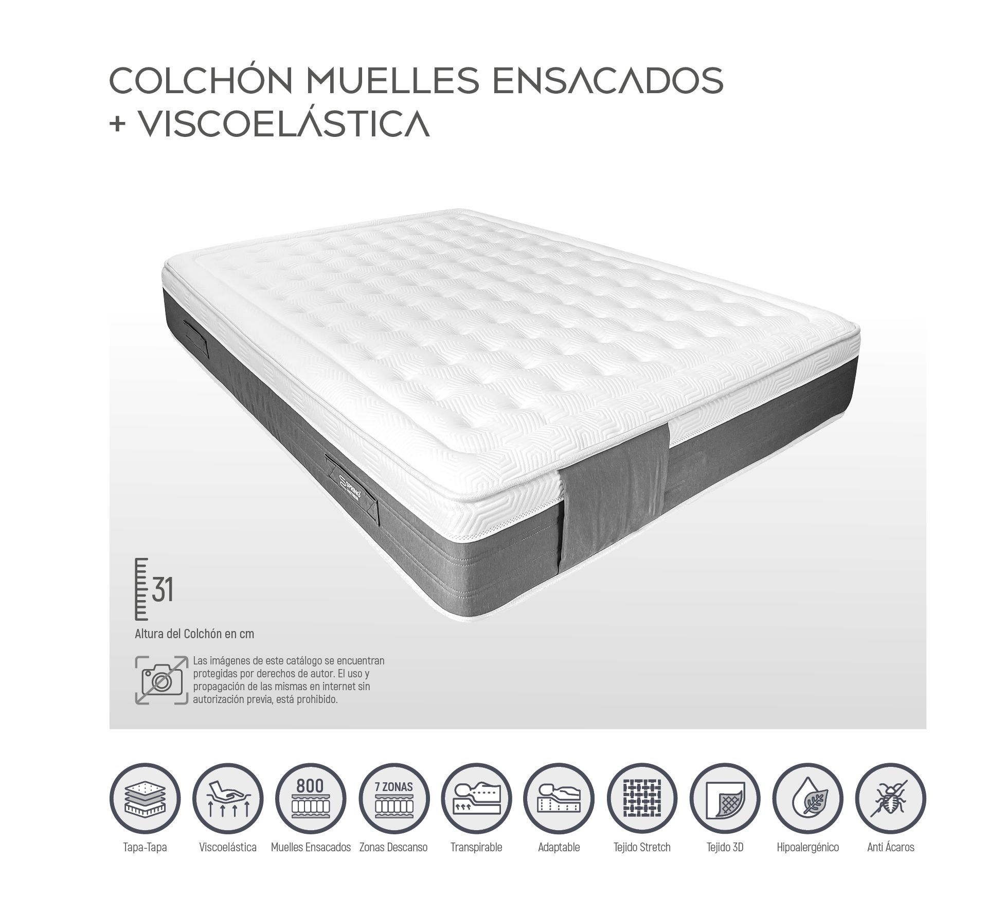 Se destaca porque cada muelle viene encapsulado en una bolsa independiente, por lo que evitamos que partan y se nos puedan clavar en nuestro colchón , como pasaba con los colchones de muelles antiguos.
