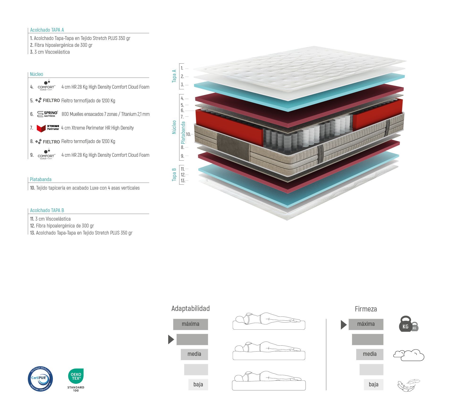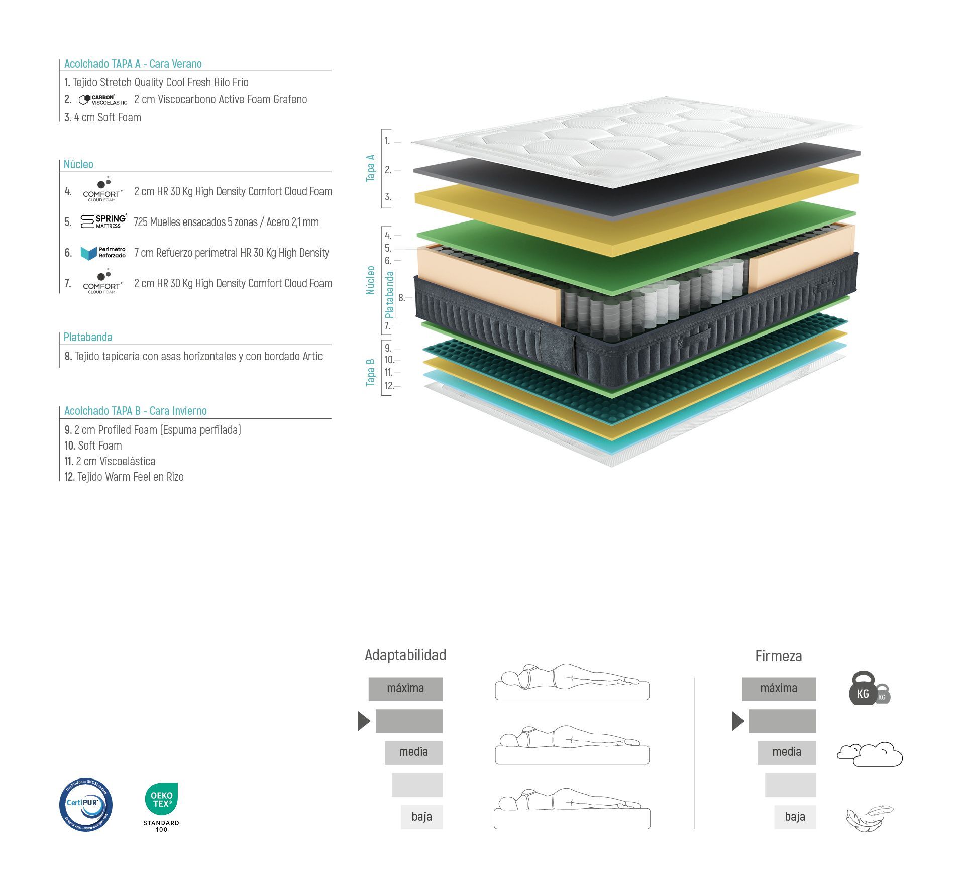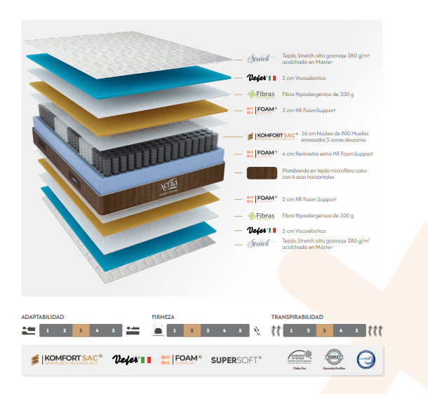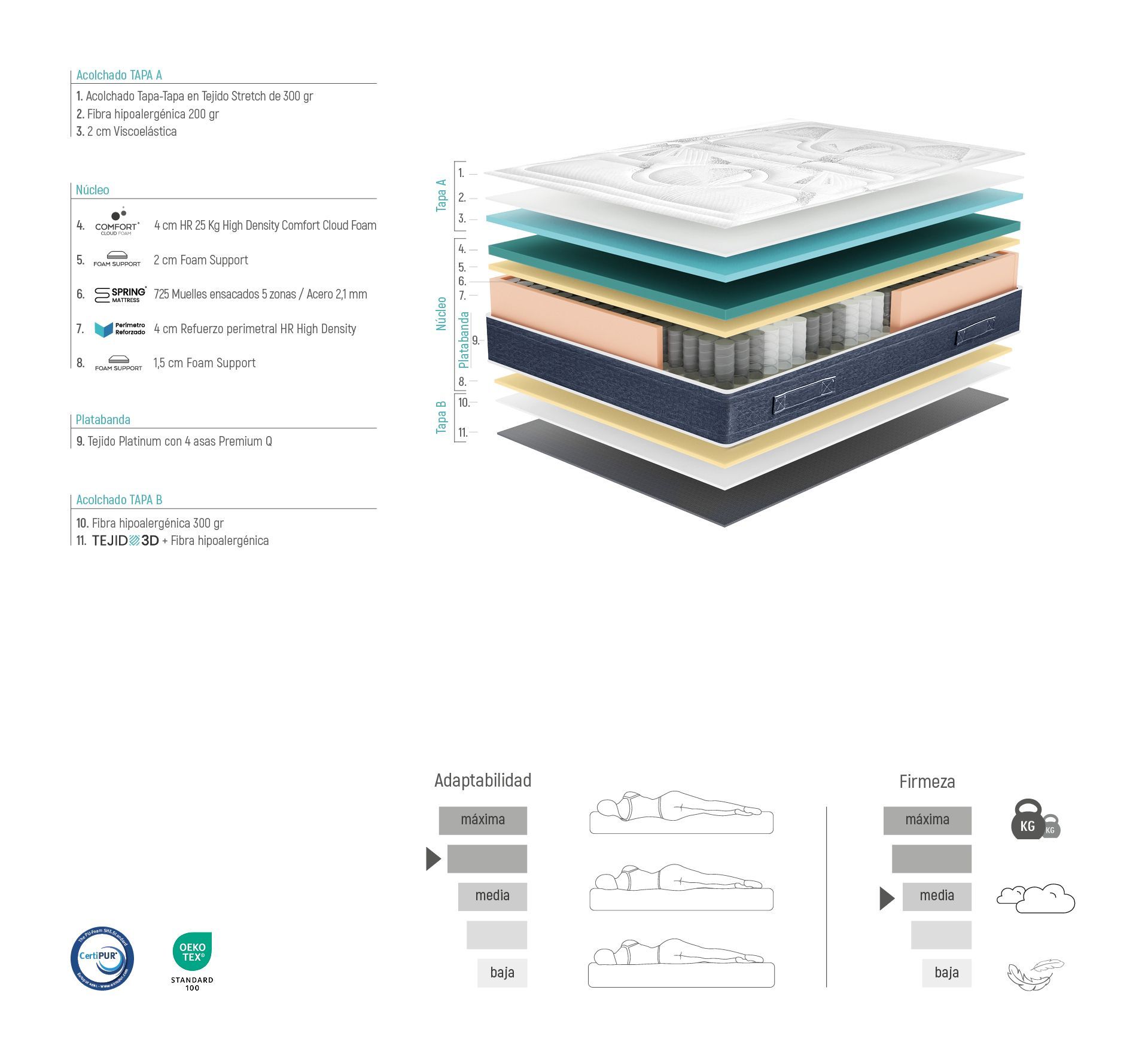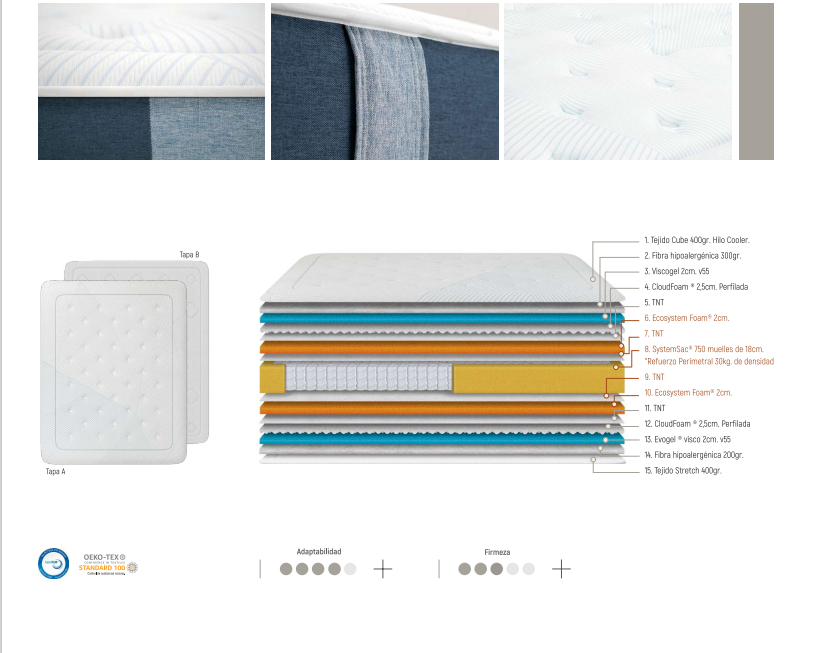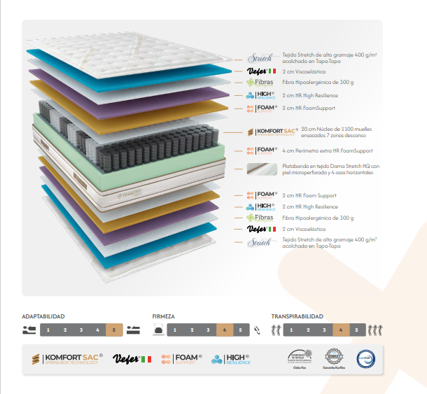 Se destaca porque cada muelle viene encapsulado en una bolsa independiente, por lo que evitamos que partan y se nos puedan clavar en nuestro colchón , como pasaba con los colchones de muelles antiguos.