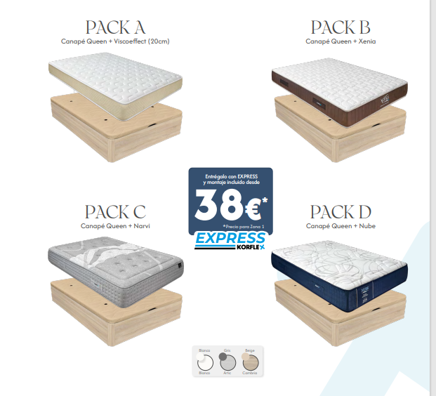 En esta sección podemos encontrar diferentes ofertas, tanto en colchones , como en packs , ya sea con canapé , base tapizada o somier.